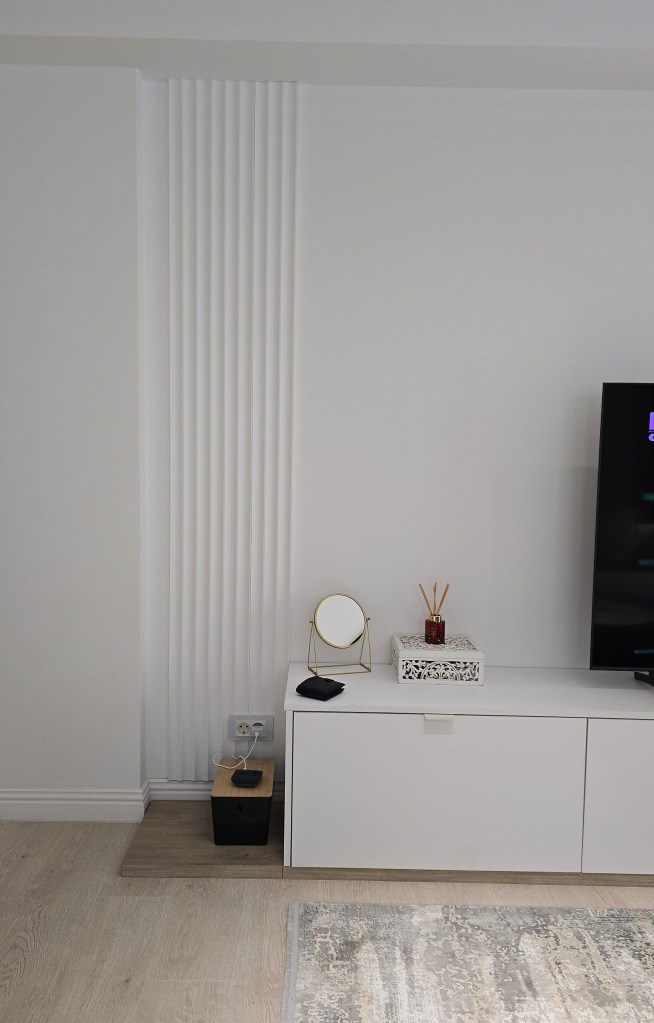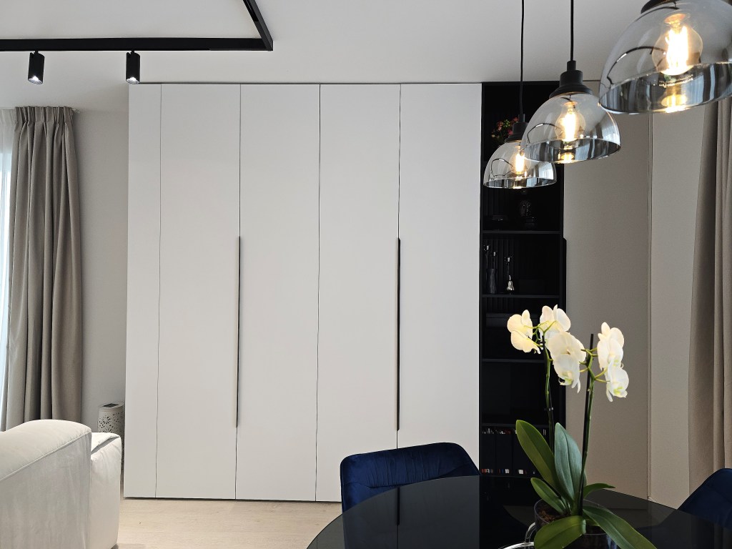 🌟Dulap de depozitare in Living. Ușile din MDF Alb Ultramat oferă luminozitate camerei si dă o notă de eleganță.