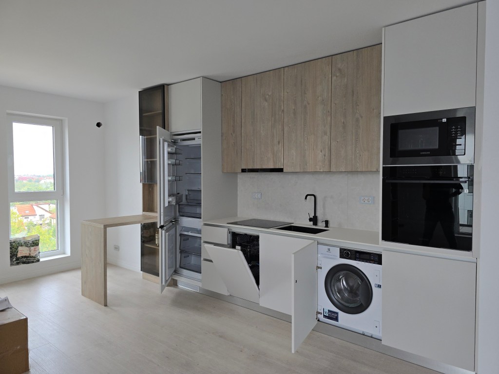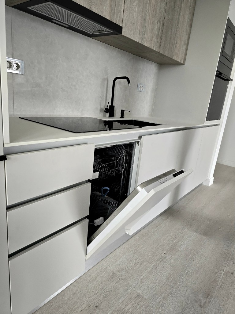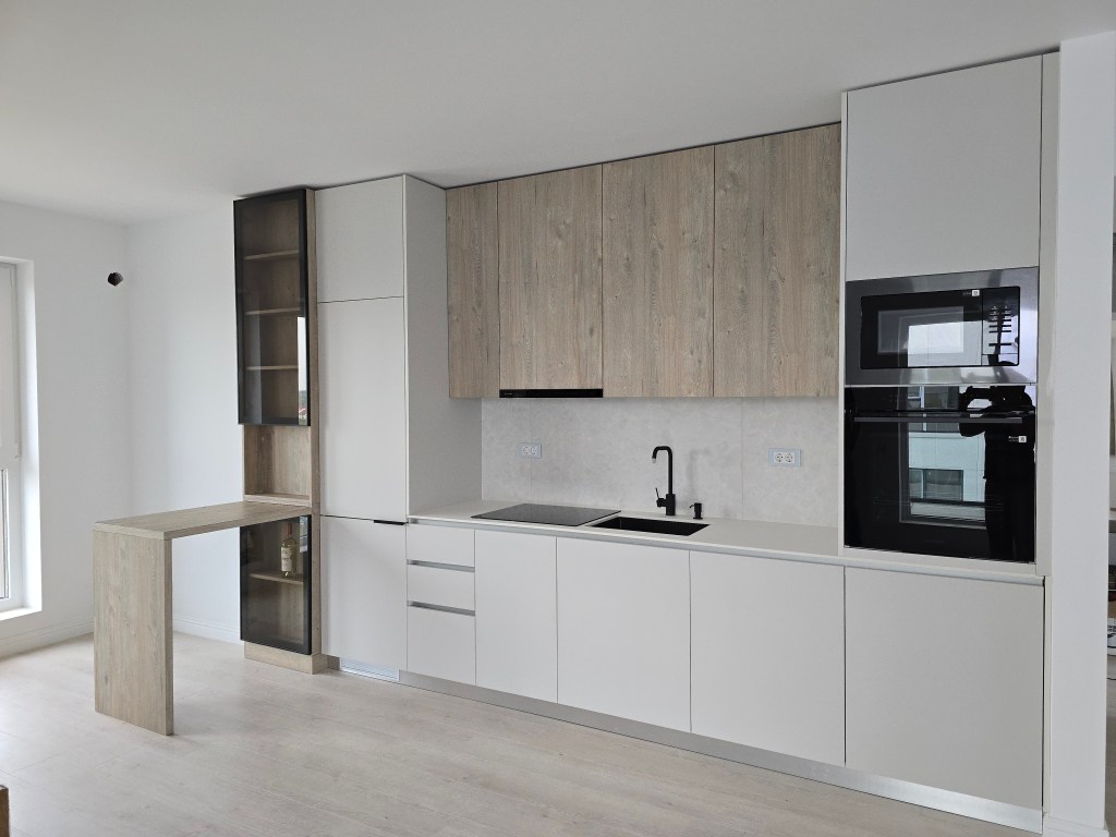 🌟Mobila de bucătarie integrată frumos în open space. Completează spațiul destinat relaxarii pentru că este in armonie cu tot designul camerei.